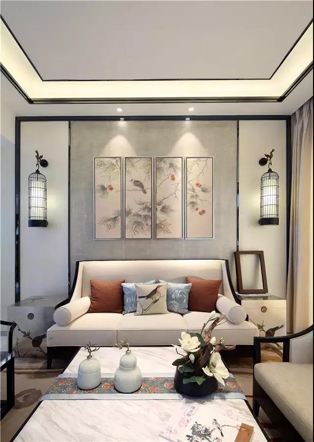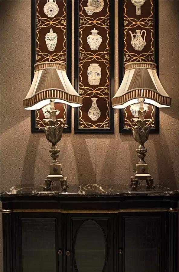 沙發(fā)、壁燈也給空間增容,體現(xiàn)空間本身的品質(zhì)和質(zhì)感。淡淡的山水墨跡,將中式情懷的胸襟和氣度都在空間淋漓演繹,營(yíng)造出:信步閑庭,淡然處之。